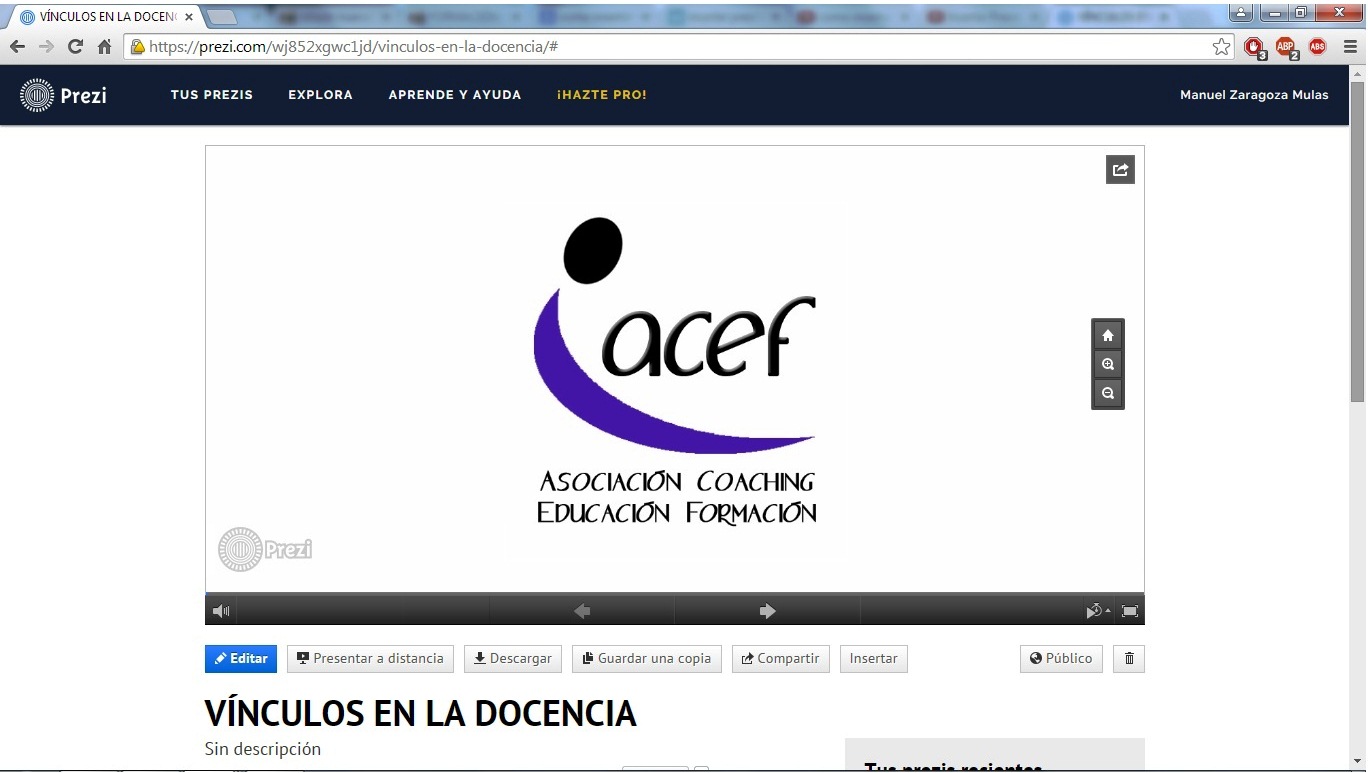 presentación prezi vinculos en la docencia Publicado 24 febrero, 2015 en 1368 × 773 en FORMACIÓN COACHING EDUCATIVO: VÍNCULOS EN LA DOCENCIA ← Anterior Siguiente → Presentación prezi: VINCULOS EN LA DOCENCIA por Manuel Zaragoza