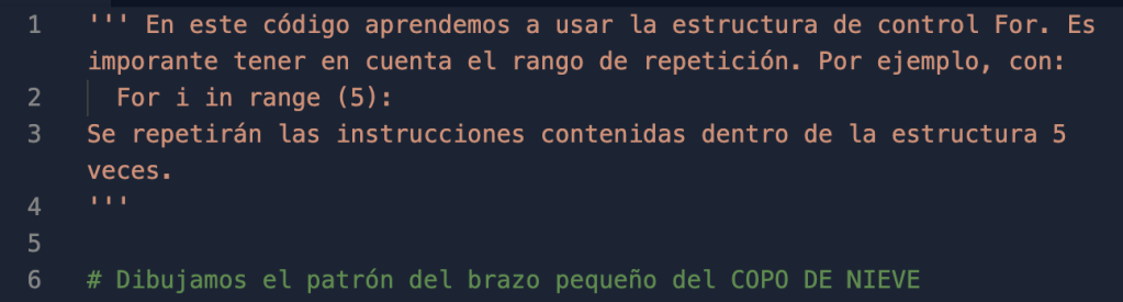 ''' En este código aprendemos a usar la estructura de control For. Es imporante tener en cuenta el rango de repetición. Por ejemplo, con: